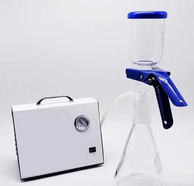 真空泵是提高過濾效率,加強脫氣效果的重要過濾配套設備。為保障過濾介質不被污染,一般均使用無油隔膜式真空泵,此類泵型是通過橡膠膜片的往返運動形成真空,其真空壓力一般為0.08Mpa左右(單級),提高過濾速度關鍵是單位時間內的排氣量,及真空泵的流量指標,在過濾量大、介質粘度高時顆粒堵塞濾膜情況下尤顯突出。